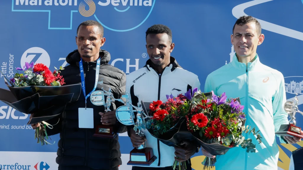 ¿En qué se parecen Selemon Berega con Kenenisa Bekele? Ambos son de Etiopía, ambos son campeones olímpicos en 10 mil metros planos, el primero en Tokio 2020 y el segundo en Atenas 2004 y Beejing 2008, y ambos lograron un triunfo en su debut en los 42K. Bekele lo consiguió en un lejano París 2014 cuando cruzó la meta en 2h05:04 y Berega lo logró hoy domingo en Sevilla con 25 años al rematar en 2h05:15. Bueno, y otra similitud de que ambos siguen siendo maratonistas activos. De hecho, Bekele estará en abril por 7° vez corriendo en Londres.