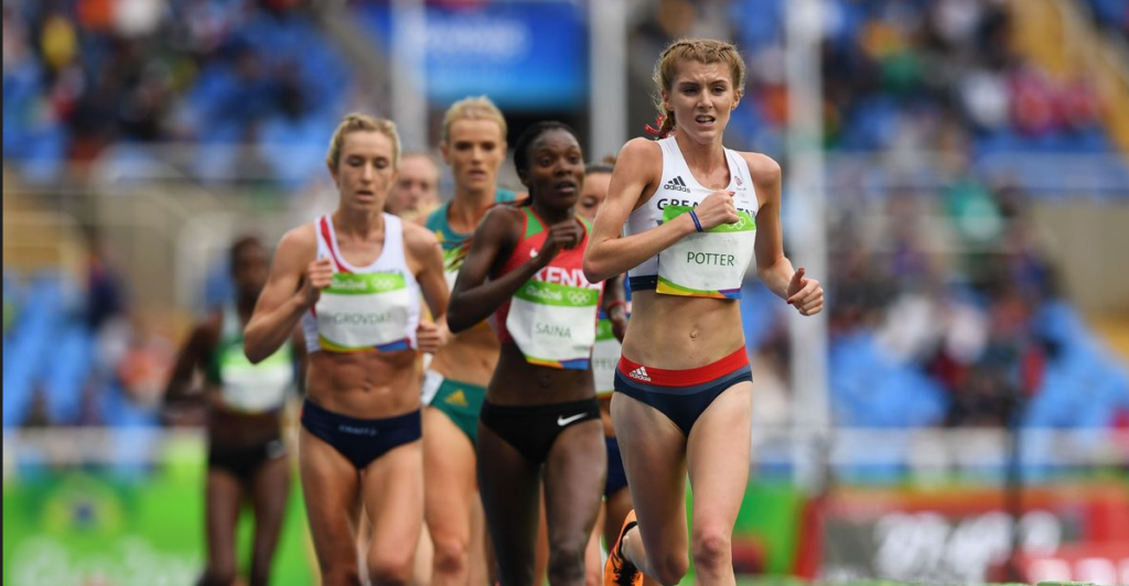 La nacida en Escocia compitió en los Juegos Olímpicos de Rio 2016 pero no precisamente en el triatlón que vio ganar a Gwen Jorgensen de Estados Unidos. Potter, próxima a cumplir 32, estuvo en el estadio olímpico Nilton Santos en los 10 mil metros planos obteniendo el puesto 34° entre 35 finalistas (2 abandonaron) con un registro de 33:04, bien lejos de los 29:17´45 que alcanzó la etíope Almaz Ayana para ganar el oro con récord del mundo para ese entonces (la marca se mantiene como récord olímpico).