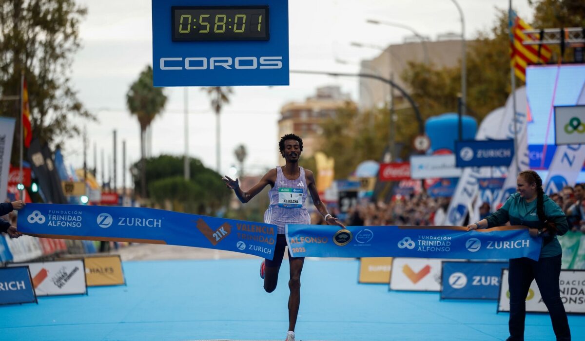 El récord que sí se logró en suelo español fue el de Europa para hombres. El sueco Andreas Almgren fue 4° en la general terminando en 58:41, superando los 59:13 que tenía el suizo Julien Wanders en Emiratos Árabes el 2019. El escandinavo viene de un año para enmarcar, siendo medalla de bronce en los 10000 en el Mundial de Tokio, además, a comienzos de temporada, y también en Valencia, logró el actual récord del continente en 10 kilómetros cronometrando 26:53.