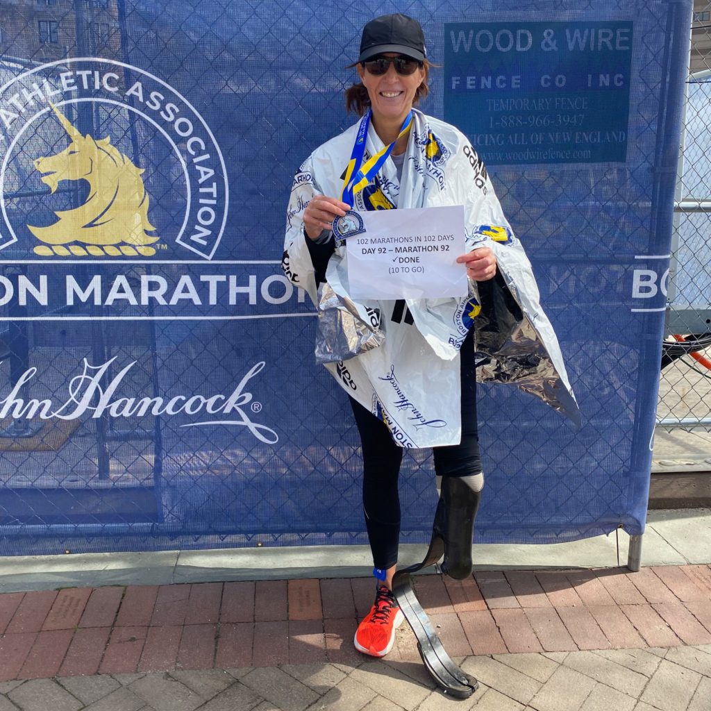 Para poder realizar este desafío, Jacky combinó los 42K en rutas cercanas a su hogar en Arizona y otras en trotadora debido a las altas temperaturas de la zona. El 18 de abril pasado, en su día número 92 del desafío, Hunt-Broersma fue parte del Maratón de Boston, terminando la carrera Major en el tercer puesto en la categoría de corredoras amputadas.