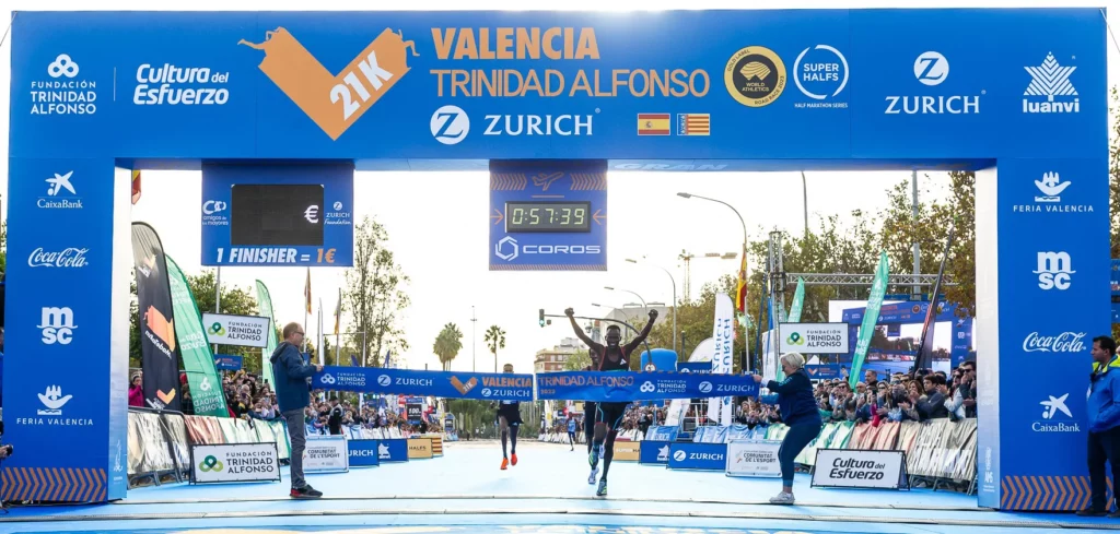 Octubre 2023.- Hoy por la mañana en España se celebró el Medio Maratón de Valencia, el último 21K de la temporada de las Super Halfs, el equivalente al circuito Major pero de medio maratón. En la prueba europea, famosa por sus rápidos tiempos (de hecho, el récord del mundo de mujeres está ahí desde el 2021 con 1h02:52 logrados por Letensebet Gidey de Etiopía), estuvo a punto de ver una nueva mejor marca mundial en hombres.