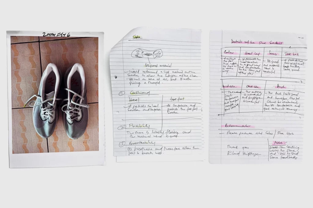 En su rotación de entrenamiento, destaca el Zoom Fly 6, una zapatilla diseñada para soportar los rigores del día a día sin perder velocidad. Kipchoge, siempre meticuloso, aprecia su parte superior más ligera y la durabilidad añadida en la suela, mejoras que sugirió con su característico estilo amable y constructivo. Más que un atleta, Eliud es un colaborador esencial. Hace bocetos, toma notas y comparte prototipos con sus compañeros del campamento de corredores. Su retroalimentación asegura que cada modelo cumpla un propósito claro, maximizando el rendimiento de los atletas en sus kilómetros más exigentes.