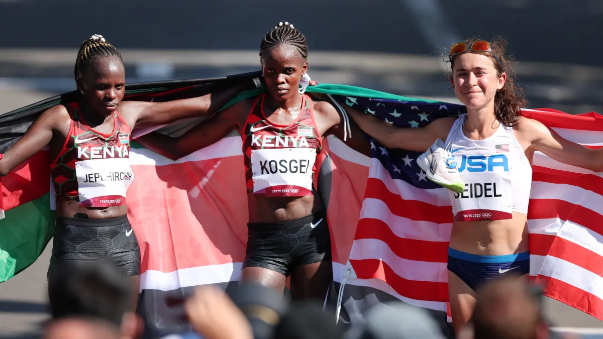 Kosgei, quien en unos días cumplirá 32, tiene como mejor marca 2h14:04, registro que fue récord del mundo por cuatro años y que hoy la dejan como la 5° maratonista más rápida de todos los tiempos. Por Kenia corrió los 42K de los Juegos Olímpicos de Tokio 2020 donde fue medalla de plata al cronometrar 2h27:36.