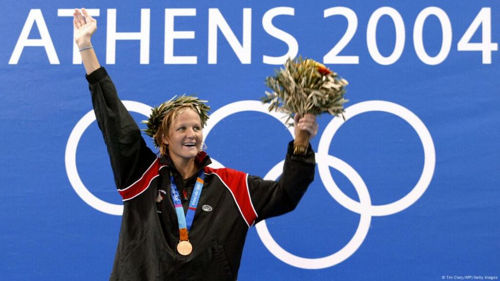 Kirsty Coventry tiene 41 años e hizo su carrera deportiva como nadadora con excelentes resultados. En su palmarés tiene 7 medallas olímpicas (2 de oro, 4 de plata y 1 de bronce). Los oros fueron en los 200 metros espalda en Atenas 2004 y Beejing 2008.