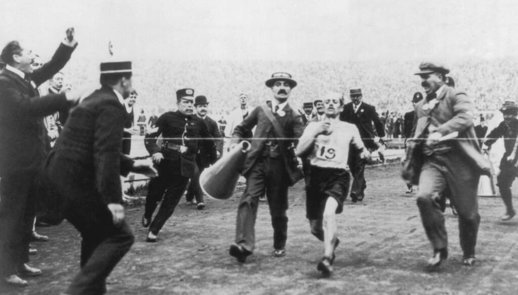 Hasta antes de 1908, la prueba del Maratón comprendía recorrer una distancia “aproximada” de 40 kilómetros, emulando así la distancia que recorrió el soldado griego Filípides en el año 490 A.C desde la ciudad helénica de Maratón hasta Atenas para comunicar la victoria sobre el ejército persa. Filípides, pocos minutos después de dar la noticia, cuenta el mito que murió por la exigencia física.