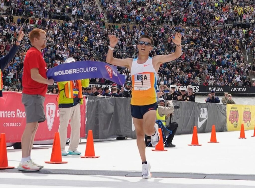 Bueno, a toda esta introducción se suma que hoy lunes ganó por tercer año consecutivo la Bolder Boulder 10K, que ya va por su 45° versión, un evento de los ya clásicos del calendario estadounidense que tiene la gracia de terminar en el estadio Folsom Field de la Universidad de Colorado repleto de personas, en su gran mayoría corredores populares esperando su turno para partir.