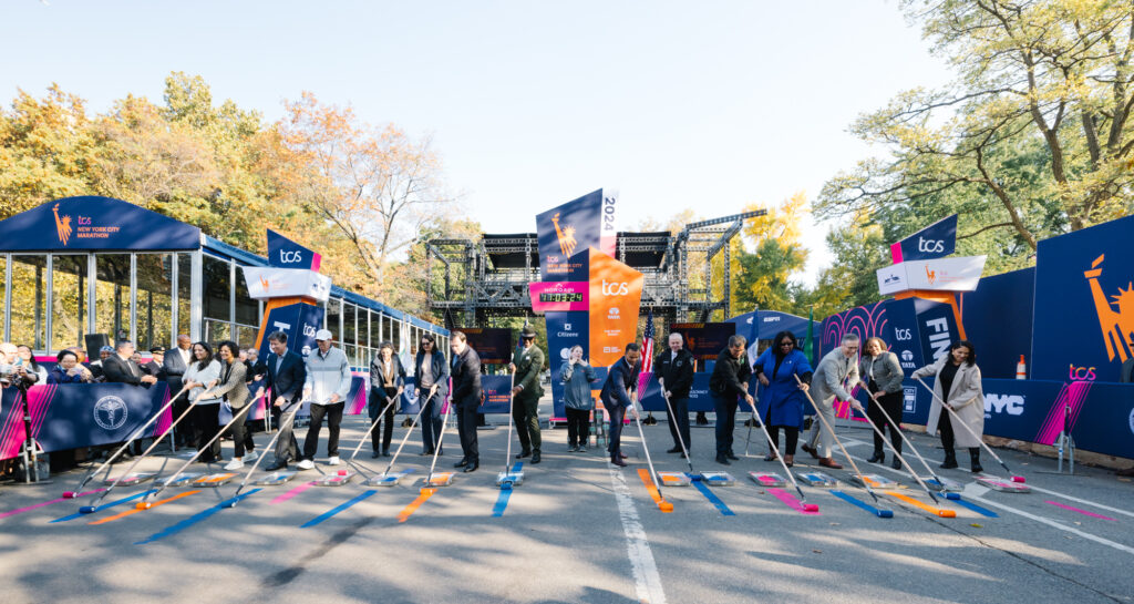 En ella las autoridades se juntaron para comenzar a pintar el camino que guiará a los corredores durante los 42.2K desde el puente Verrazzano en Staten Island hasta la meta en el Central Park, conocido popularmente como la Blue Line.