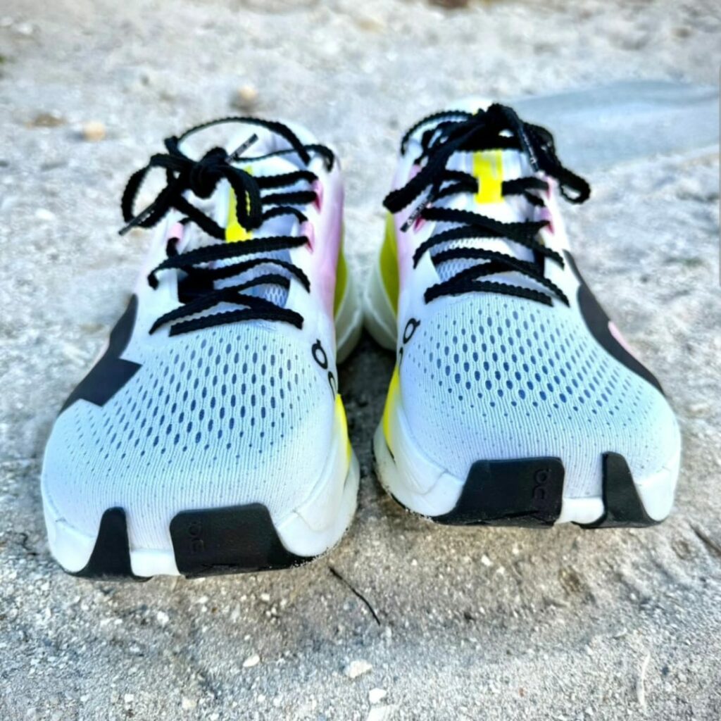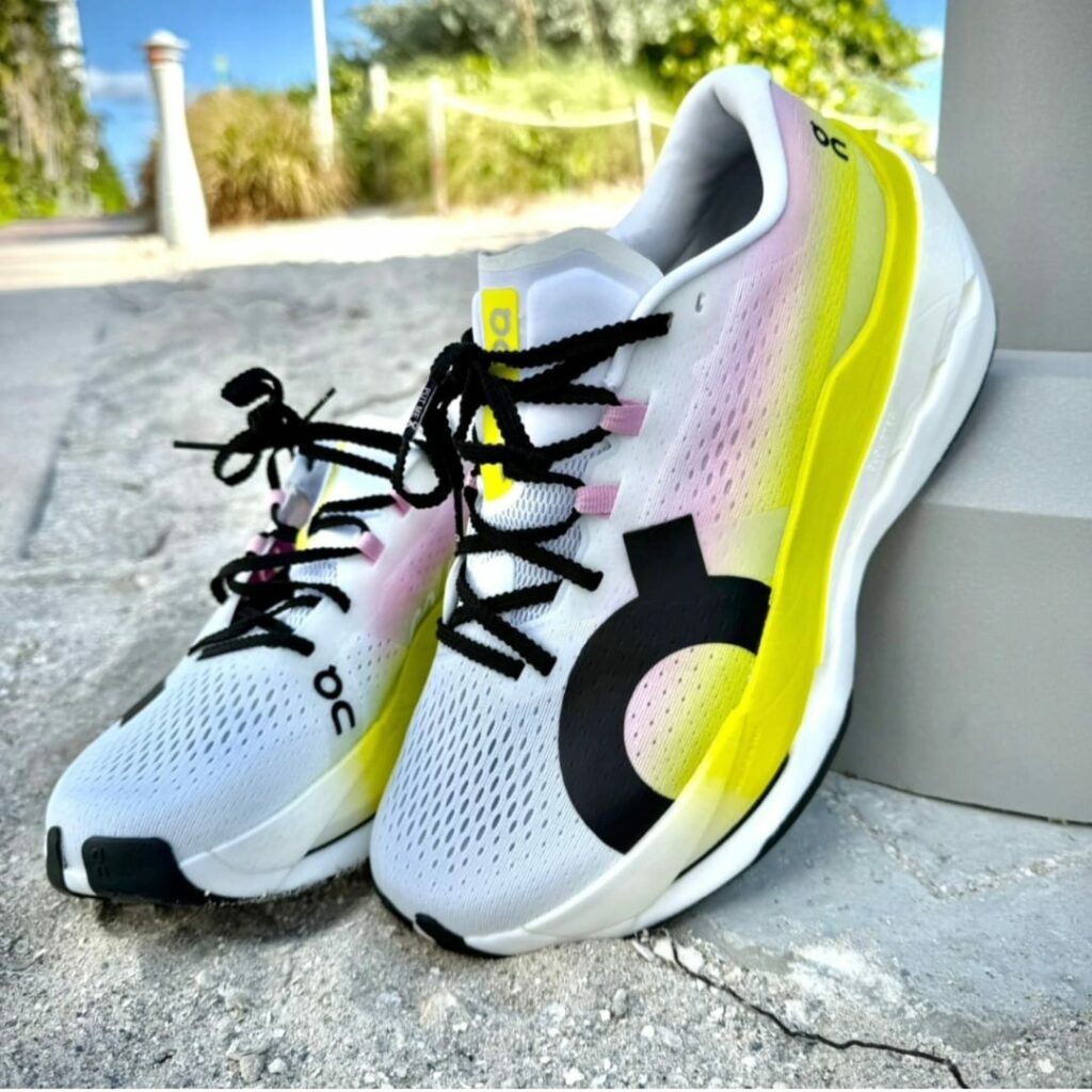 Y lo cierto es que la comodidad inicial es indiscutible. El upper es muy transpirable, la lengüeta podría ser algo menos filuda, pero cumple, y el refuerzo de talón bien diseñado hacen que el calce sea cómodo y seguro. Además, el espacio en la zona delantera de la zapatilla y el ajuste amplio la convierten en una opción ideal para pies anchos o corredores que prefieren un poco de libertad adelante. En estética, On no falla: el diseño combina ese minimalismo suizo con colores atrevidos y detalles de marca que le dan un aire de “día de carrera”. Es una zapatilla On desde donde se la mire.
