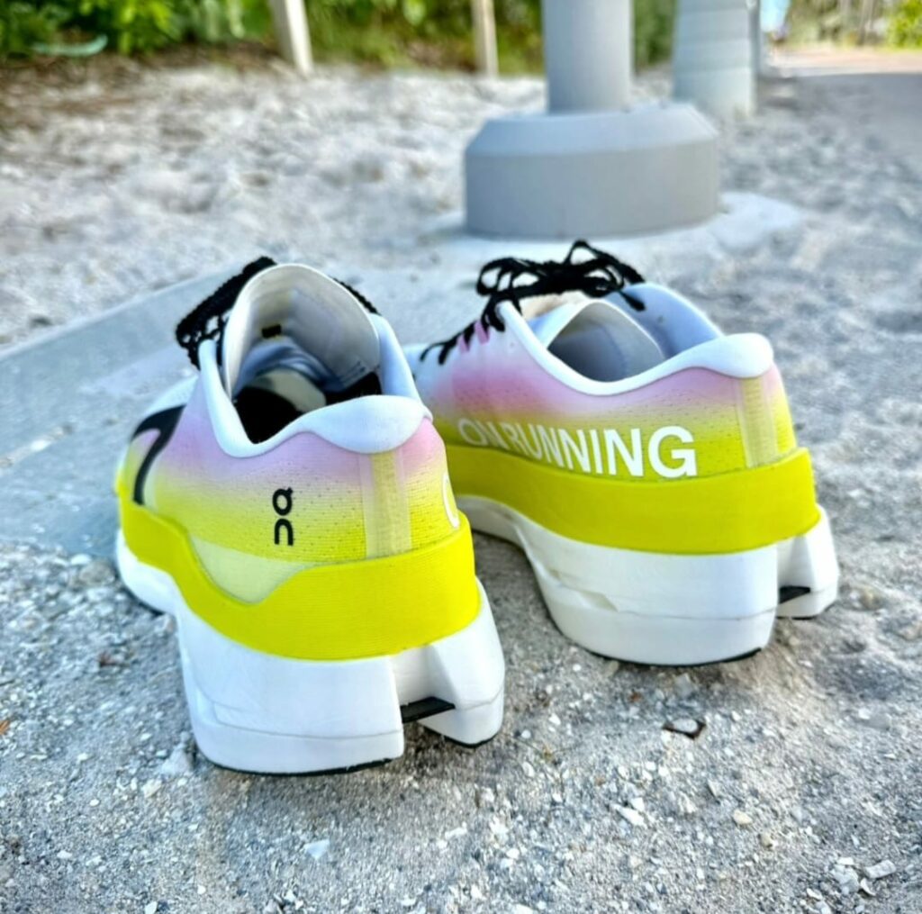 Y lo cierto es que la comodidad inicial es indiscutible. El upper es muy transpirable, la lengüeta podría ser algo menos filuda, pero cumple, y el refuerzo de talón bien diseñado hacen que el calce sea cómodo y seguro. Además, el espacio en la zona delantera de la zapatilla y el ajuste amplio la convierten en una opción ideal para pies anchos o corredores que prefieren un poco de libertad adelante. En estética, On no falla: el diseño combina ese minimalismo suizo con colores atrevidos y detalles de marca que le dan un aire de “día de carrera”. Es una zapatilla On desde donde se la mire