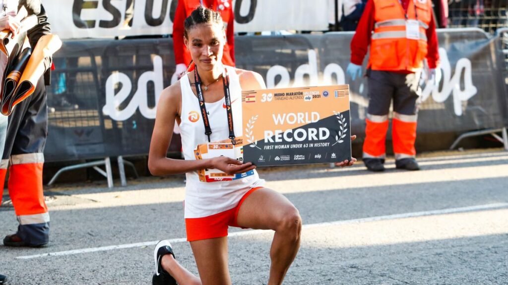 Bajos), además de ser la única mujer en terminar el medio maratón bajo los 63