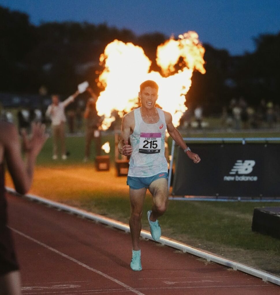 ¿Te imaginas correr un 5 mil con todo el show para que sientas un rock star y tener a un campeón olímpico como pacer? Esto sucedió el pasado fin de semana en una nueva edición del London 5000 donde Alex Yee de Gran Bretaña, oro en el triatlón de París 2024 corriendo los 10K finales en 29:47, fue el encargado de marcar el ritmo en una carrera donde hubo luces, fuego y todo lo necesario para disfrutar viendo un gran espectáculo en la pista.