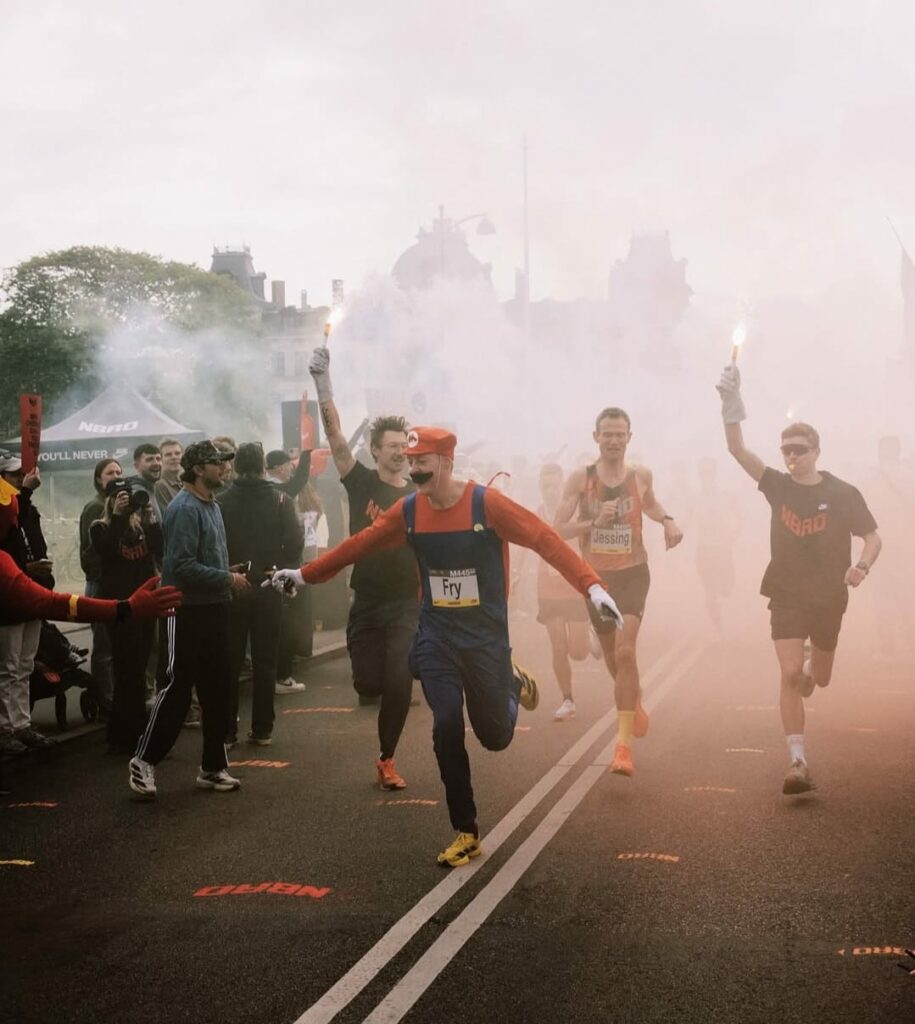 El británico Hugo Fry corrió hace unas semanas el Maratón de Copenhagen en Dinamarca terminando en 2h26:47, siendo 33° en la general ¿y qué tiene de especial esto? Es que lo hizo disfrazado de Súper Mario, anotando el nuevo récord del mundo como el atleta más rápido en correr un maratón disfrazado de un personaje de video juego. Fry logró mejorar el anterior récord planetario que desde el 2023 estaba en 2h52:47 hecho en Londres.