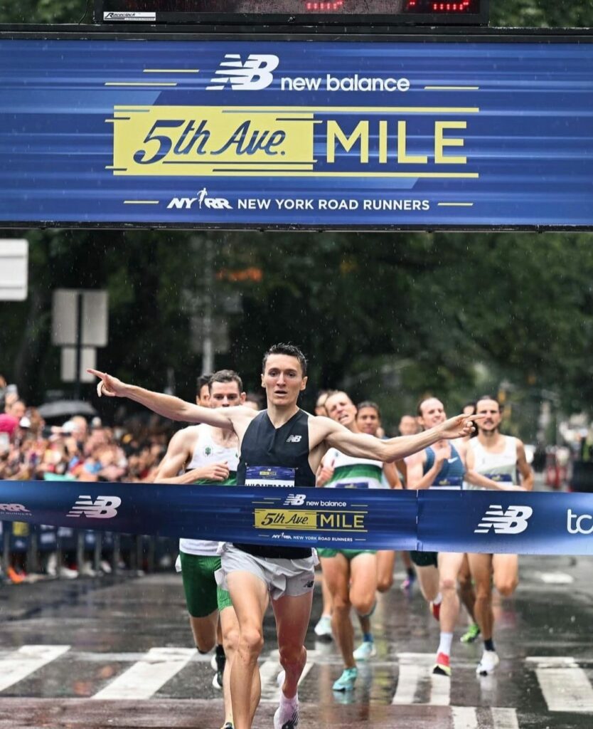 Septiembre de 2022. En una jornada marcada por la lluvia, hoy en la mañana se realizó la 41° edición de la “5th Avenue Mile” en Manhattan, New York, instancia donde el británico Jakes Wightman revalidó su título del año pasado al triunfar en los 1.609 metros. Jakes, reciente campeón mundial en los 1500 metros, cronometro 3m49´6 en la milla (ritmo de 2:22 x/km).